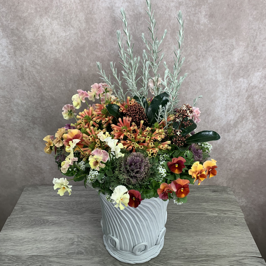 【綱木紋鉢(つなきもん)】ムーンライト Lサイズ 中古アウトレット白薄ピンク幅42cm×奥行14cm×高さ52cm 植木鉢